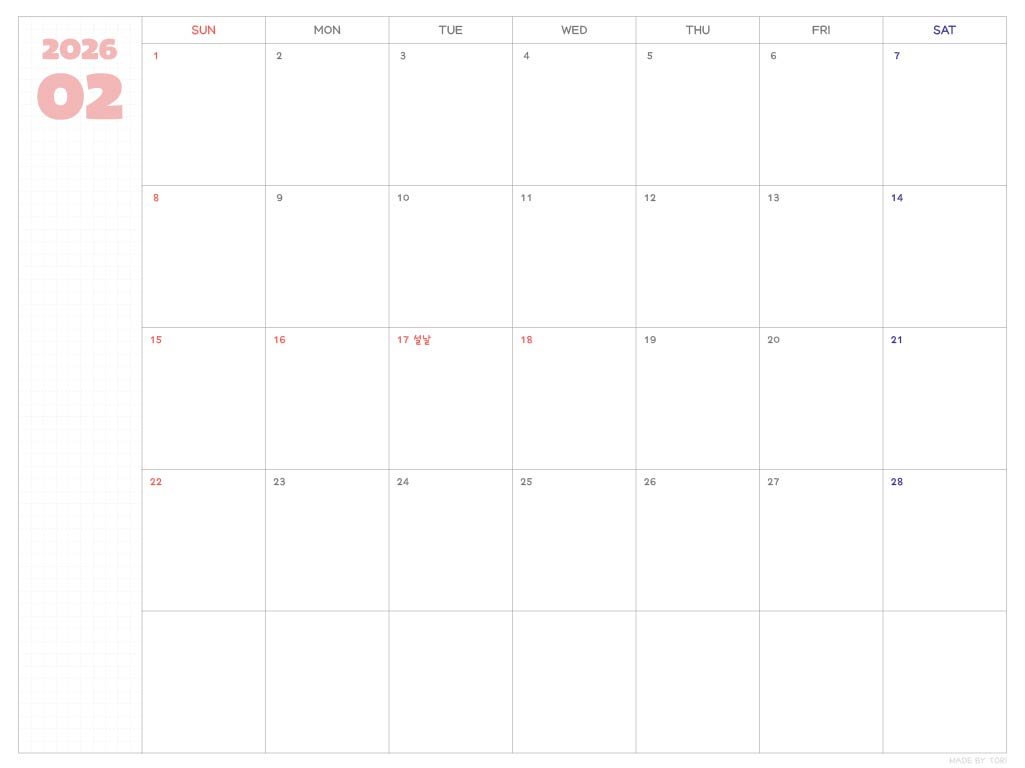 ⭐ 예외로 2월이 4줄이여서 4줄버전(확장)과